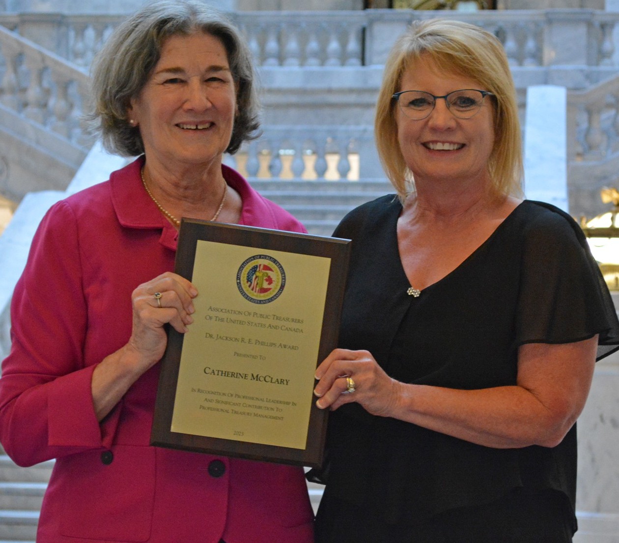 The Phillips Award was instituted in 1980 to annually recognize one APT US&C member for their professional leadership and significant contributions to professional treasury management. This is the Association’s most prestigious award, and was created to encourage and recognize the development of innovative programs in the field of public finance.